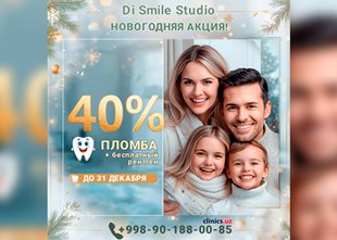 Новогодняя СКИДКА 40% на пломбу + БЕСПЛАТНЫЙ РЕНТГЕН в клинике Di Smile Studio