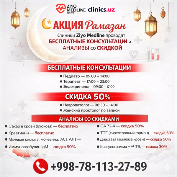 АКЦИЯ Рамазан: БЕСПЛАТНЫЕ консультации врачей и скидки на анализы в Ziyo Medline