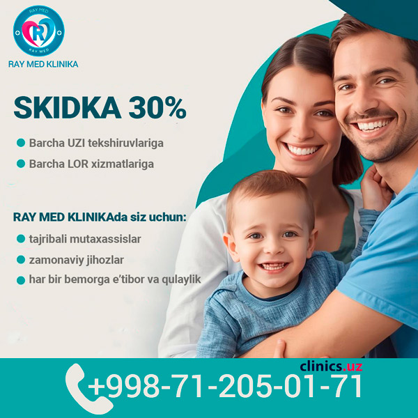 SKIDKA 30% barcha UZI va LOR xizmatlariga RAY MED KLINIKAda