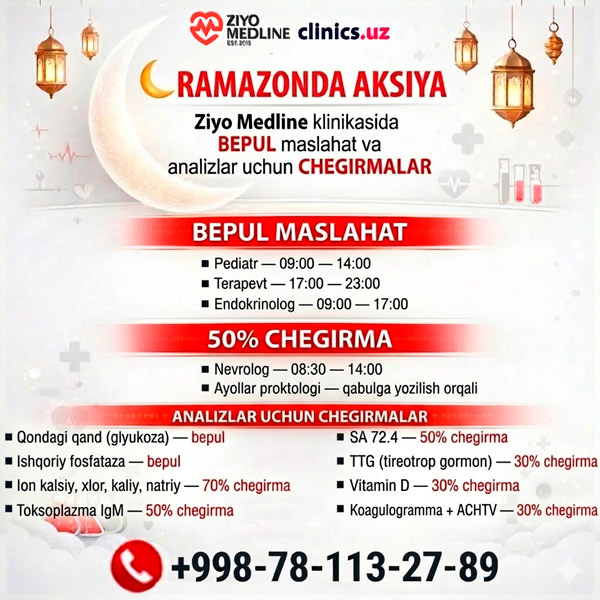 AKSIYA Ramazonda: Ziyo Medline klinikasida BEPUL konsultatsiyalar va analizlarga SKIDKALAR